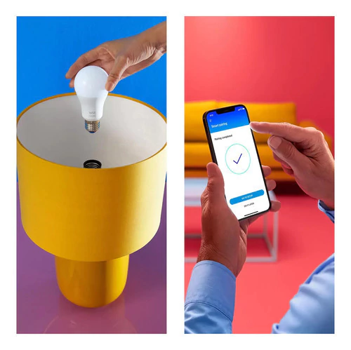 La lámpara Full Color WiZ LED brinda iluminación inteligente para tu vida diaria. Crea el ambiente que desees con 16 millones de colores y luz blanca cálida a fría. Puedes establecer un horario para encender y apagar las luces de acuerdo con las rutinas diarias o semanales, controlar con tu teléfono inteligente o tu voz y tener acceso remoto a tus luces incluso cuando no estés. Las luces WiZ se conectan a tu Wi-Fi existente, no se necesita ningún hardware adicional.